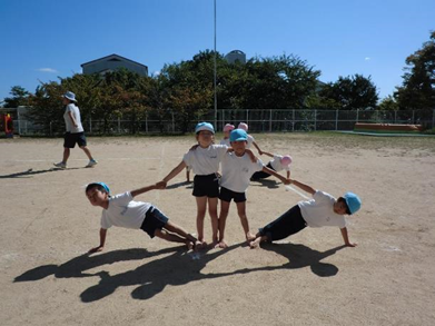 小さい組・年少さんは、基本的な挨拶・整列から始まり、けがの無いようにきちんと先生の話を聞けるように指導を受けます。年中・年少さんは、運動会の組体操に向け、基本の隊形から練習していきます。